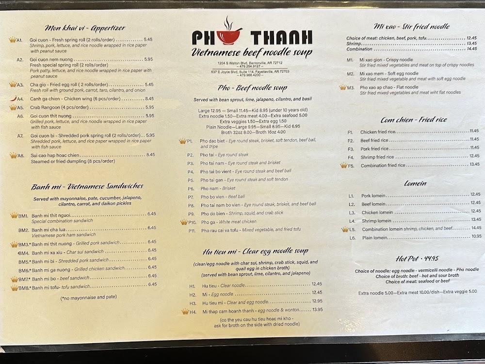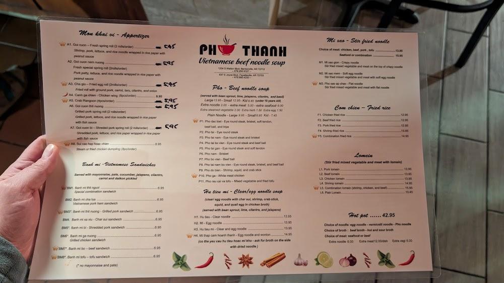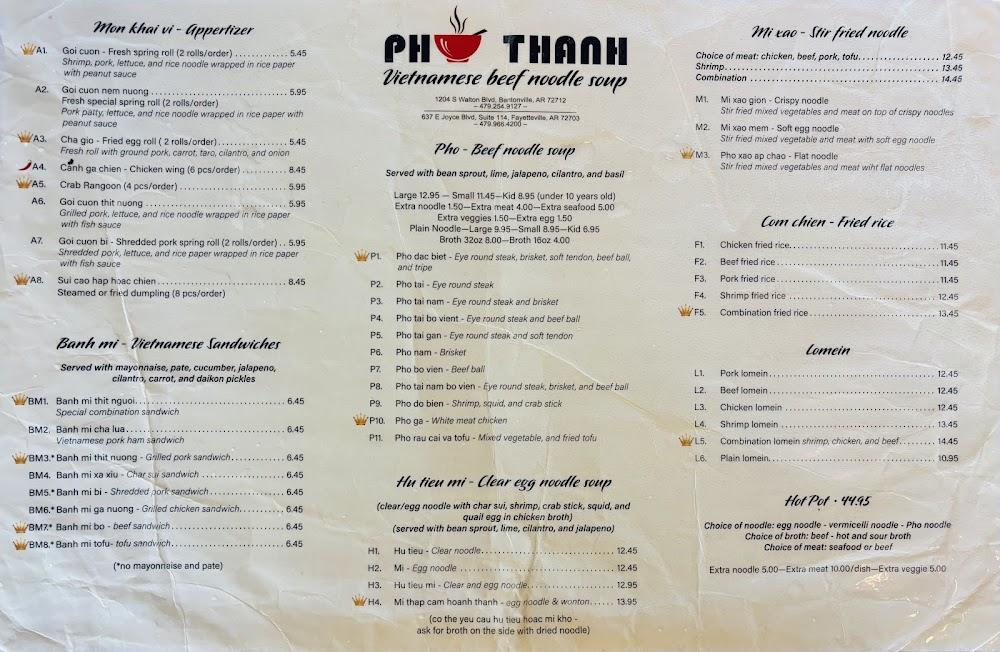Welcome to Pho Thanh, your destination for authentic Vietnamese cuisine in Bentonville, AR. Located at 1204 S Walton Blvd, we specialize in delicious "pho" and a diverse selection of traditional dishes, all served in a relaxed and trendy atmosphere. Enjoy the ease of takeout, delivery, or dine-in options to suit your needs. With a grand choice of teas and vegetarian-friendly meals, we cater to everyone, from solo diners to groups. Our restaurant is wheelchair accessible, ensuring a comfortable experience for all. Join us for lunch or dinner, and savor the flavors of Vietnam with every bite!